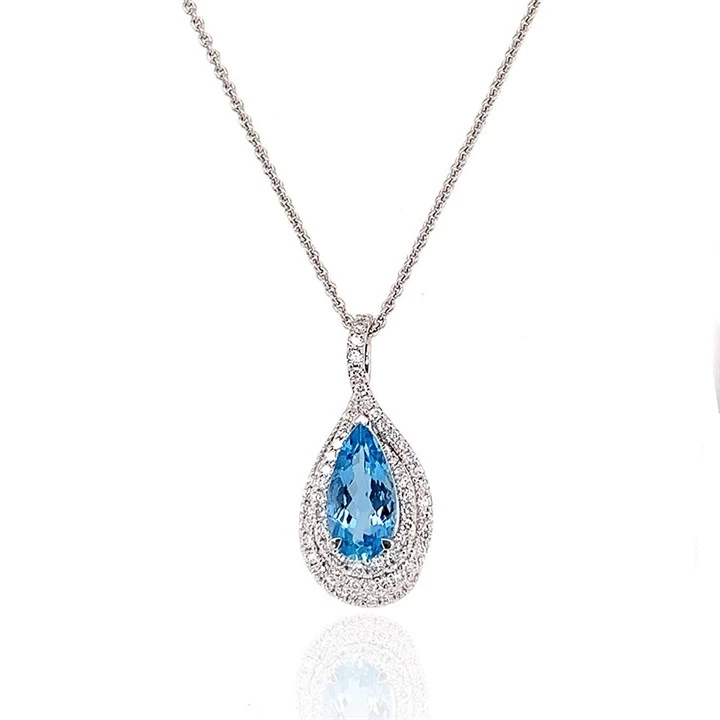 18ct White Gold Aquamarine And Diamond Necklace - 35pts - D4615