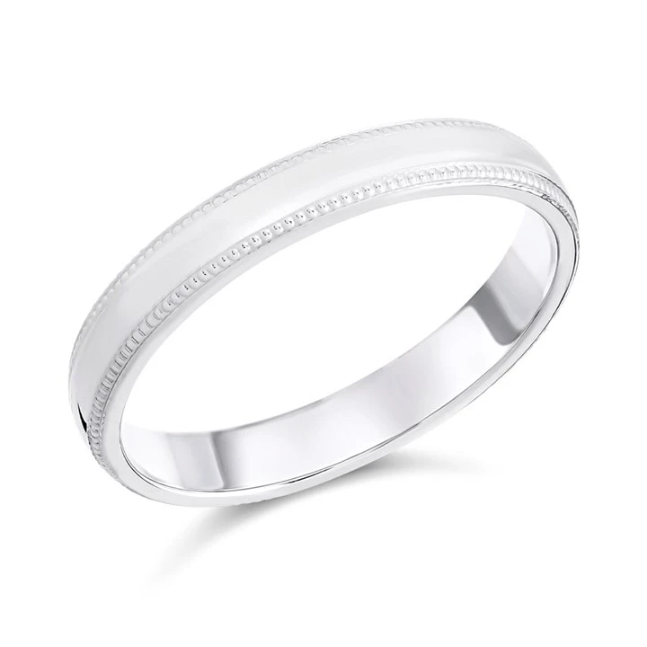 18ct White Gold Beaded Edge Wedding Ring - 3mm - X20650