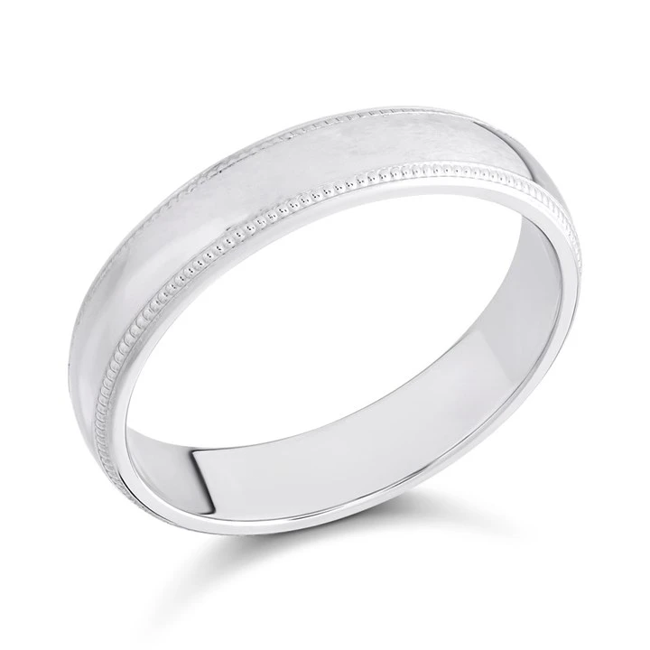 18ct White Gold Beaded Edge Wedding Ring - 4mm - X20651