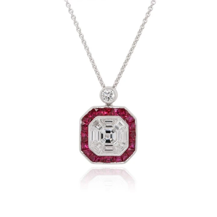 18ct White Gold Diamond And Ruby Necklace - 77PTS - D4602