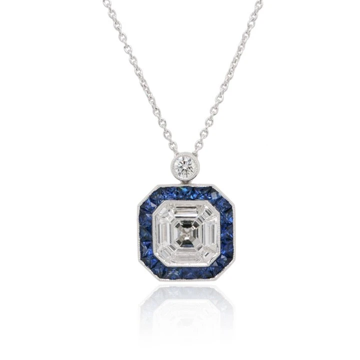 18ct White Gold Diamond And Sapphire Necklace - 78pts - D4603