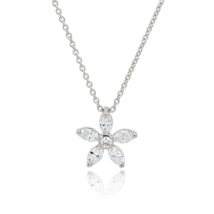 18ct White Gold Diamond Flower Necklace - 30pts - D4536