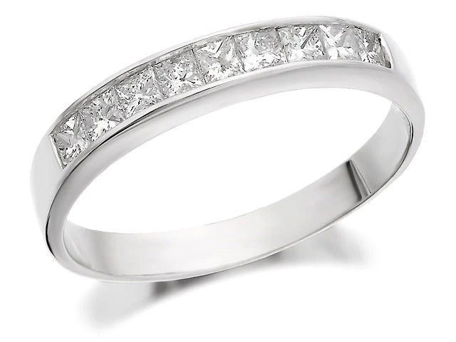 18ct White Gold Princess Cut Diamond Half Eternity Ring - 1/2ct - D0732