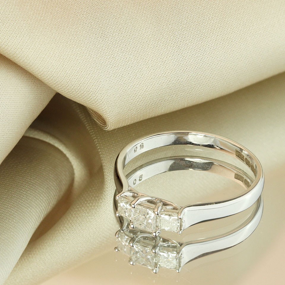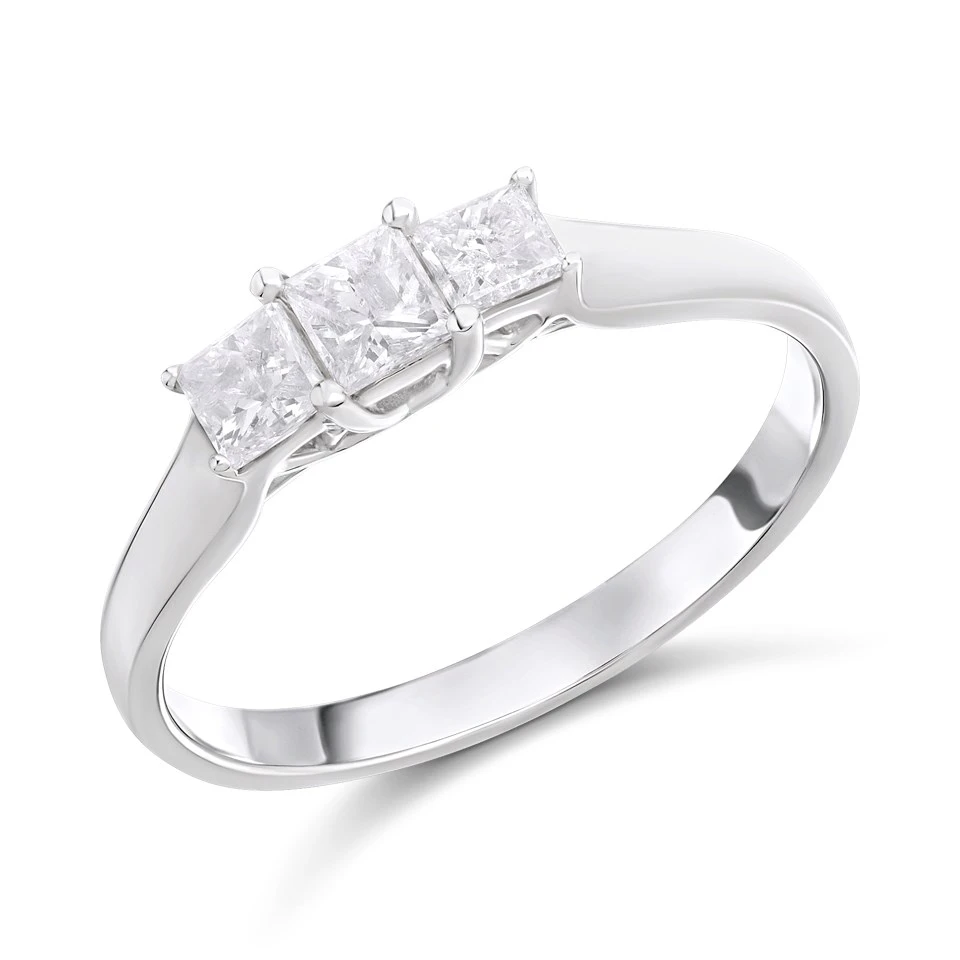 18ct White Gold Princess-Cut Diamond Trilogy Ring, 1/2ct - D1319