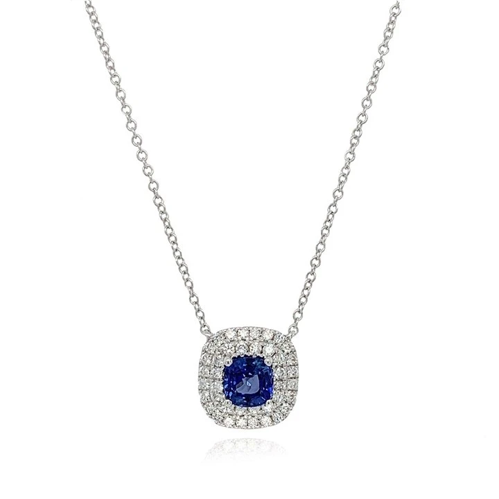 18ct White Gold Sapphire And Diamond Cluster Necklace - 29pts - D4608