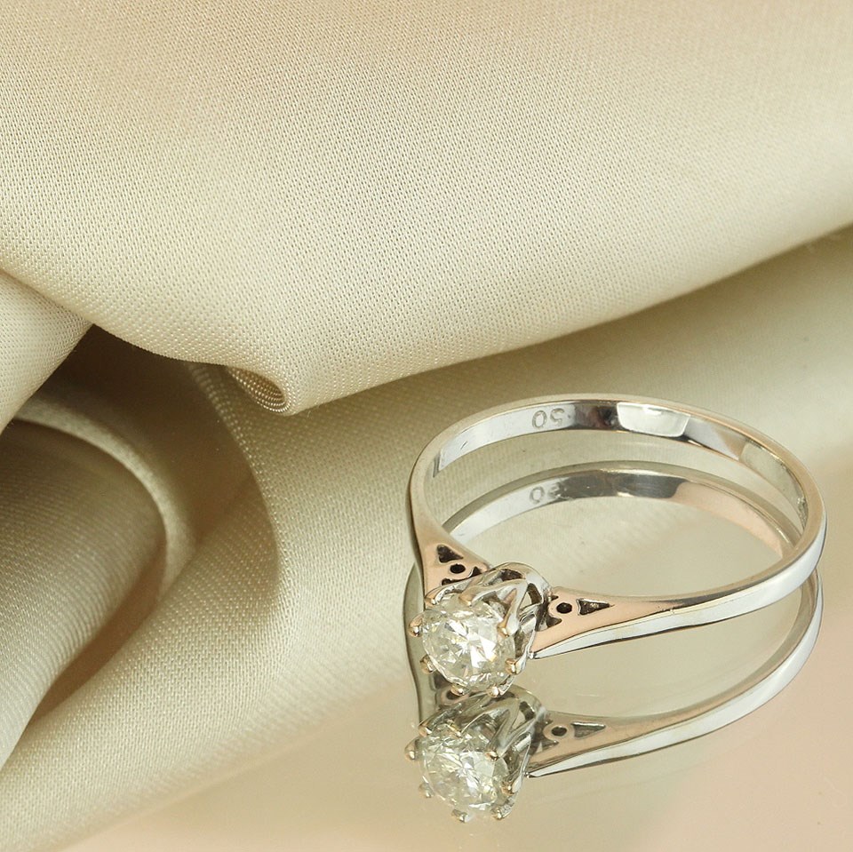 18ct White Gold Solitaire Diamond Ring, 1/2ct - D0745