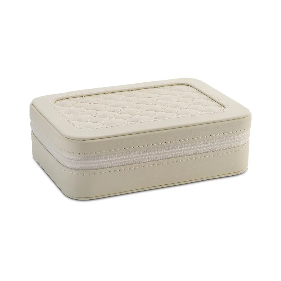 5270 Ivory PU Quilted Travel Jewel Box - P55170
