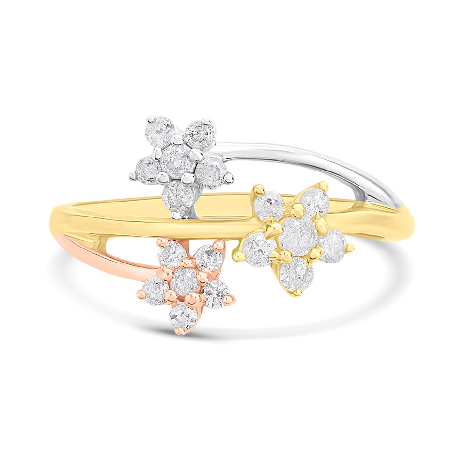 9ct 3-Colour Triple Diamond-Set Flower Cluster Ring, 1/3ct - D8617