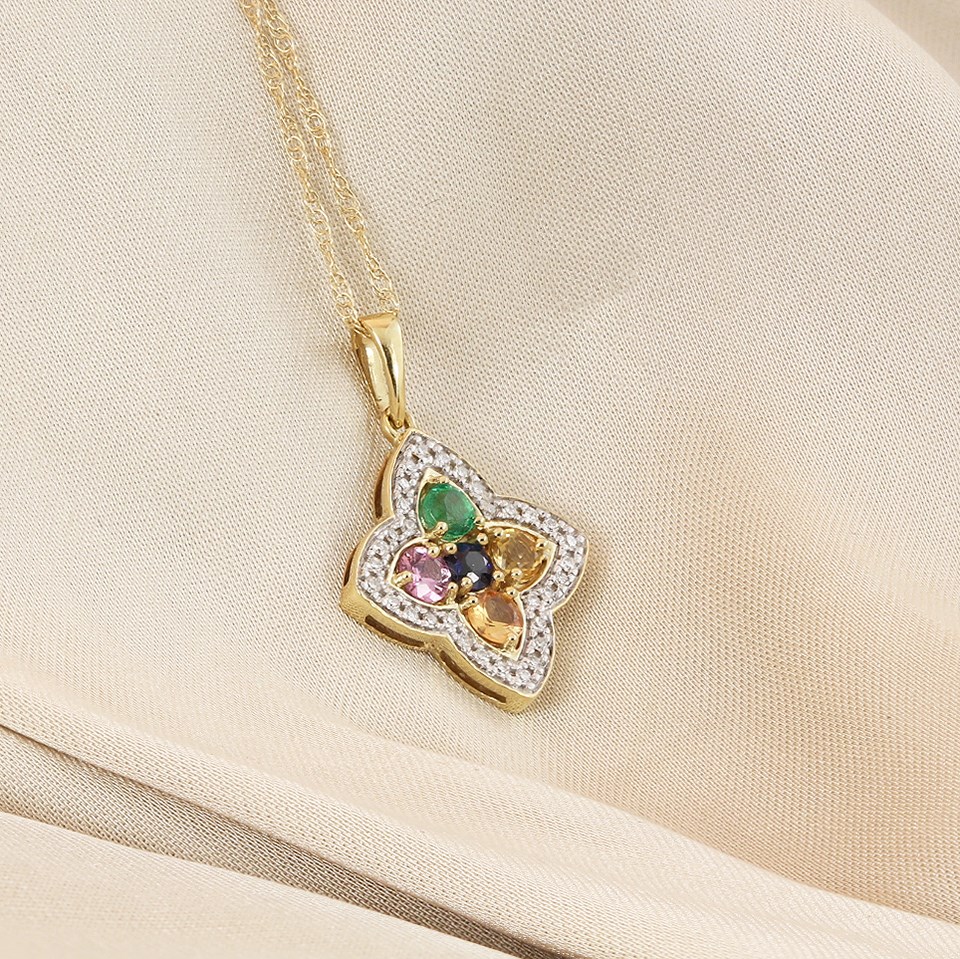 9ct Diamond And Multi-Coloured Sapphire Clover Necklace - D97144