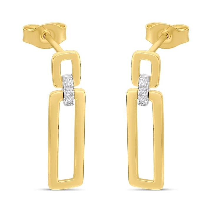 9ct Double Open Rectangular Diamond Drop Earrings - D96105