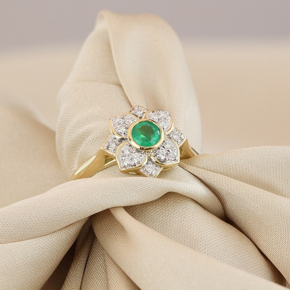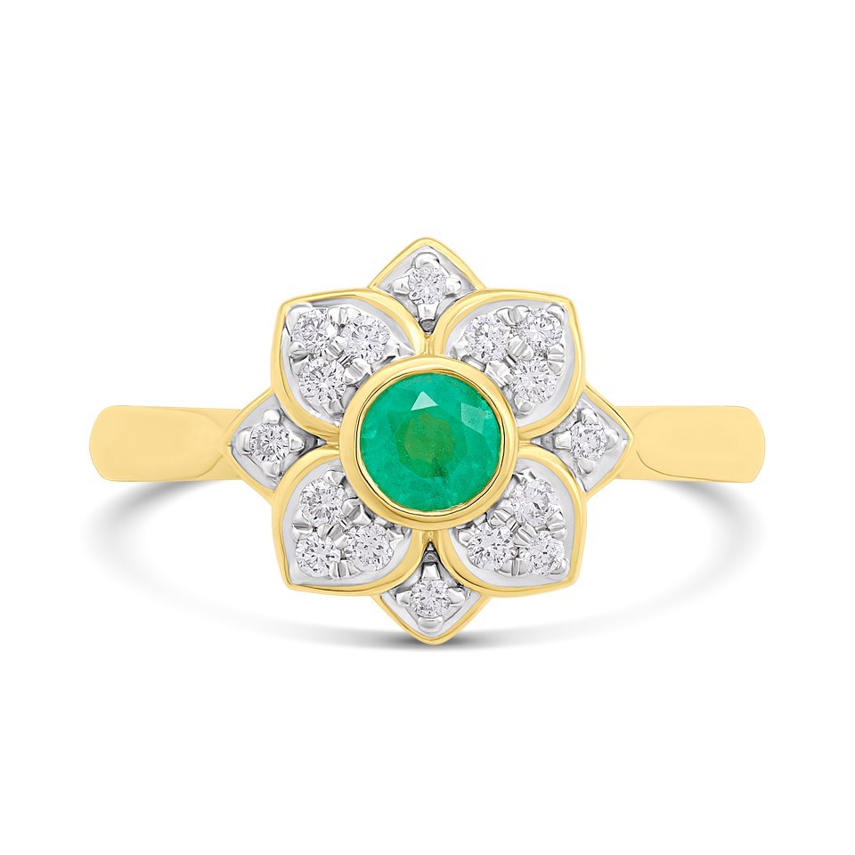 9ct Emerald And Diamond Round Cluster Ring - D7641