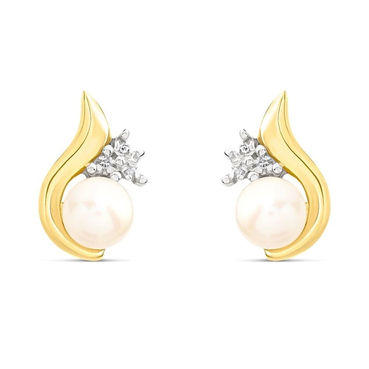9ct Freshwater Pearl And Diamond Stud Earrings - G0695