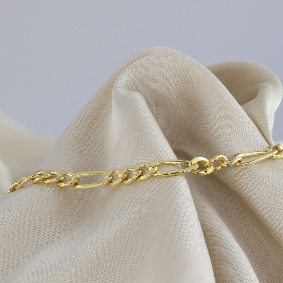 9ct Gold 4mm Wide Figaro 7.5in Bracelet - G64119