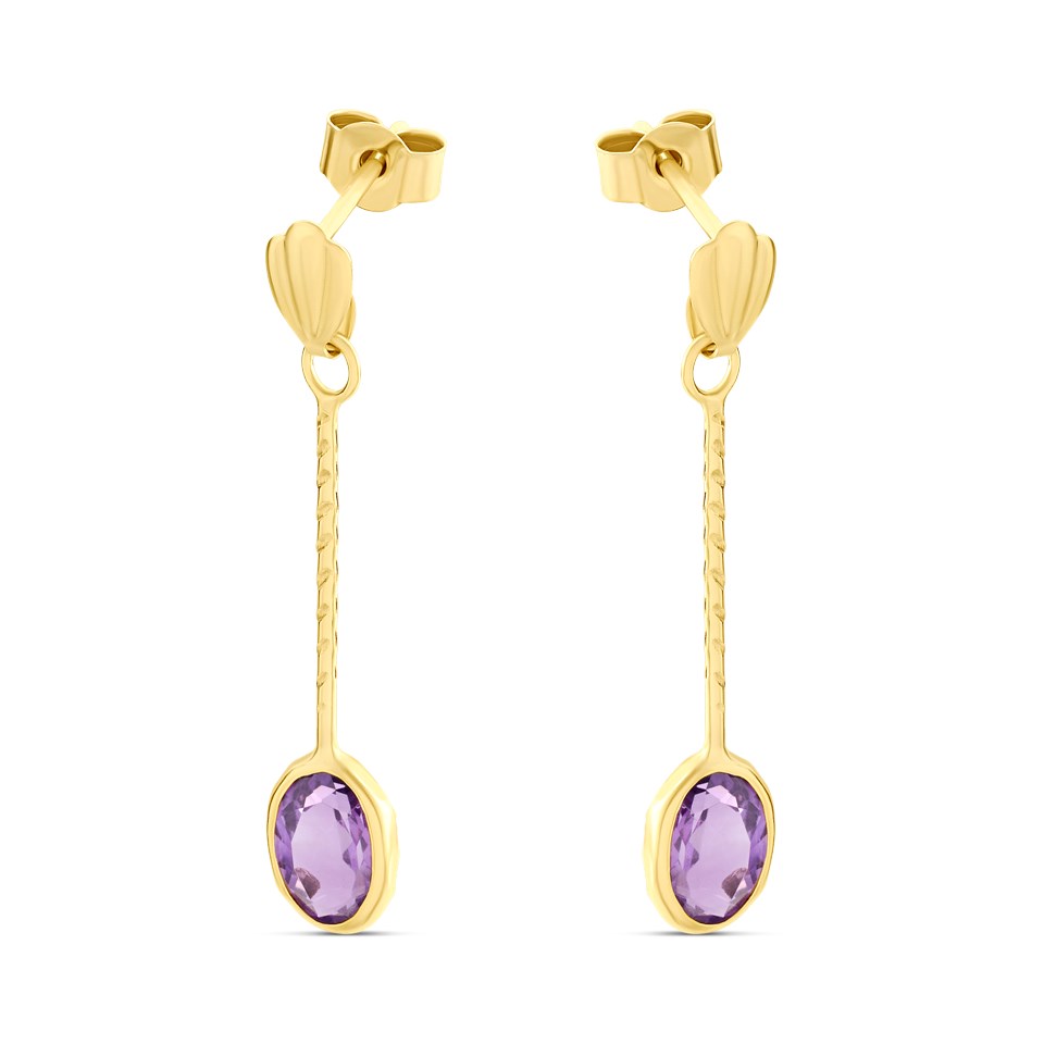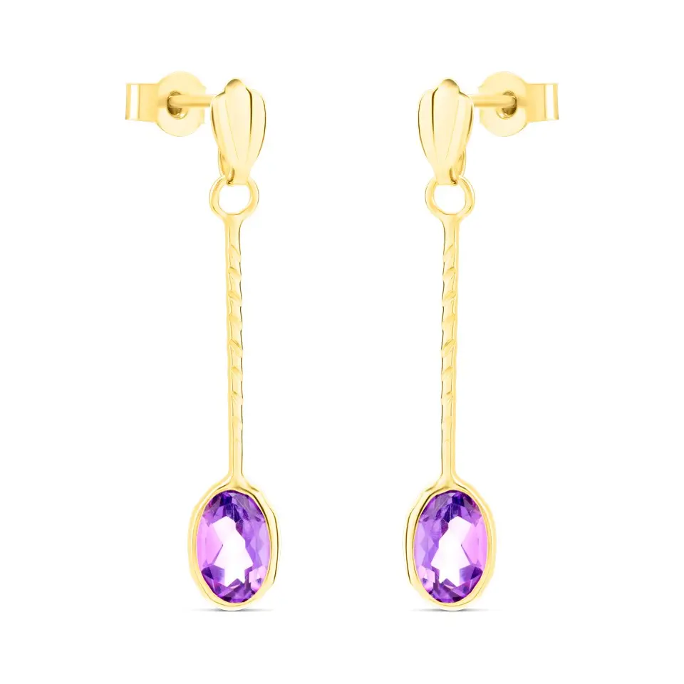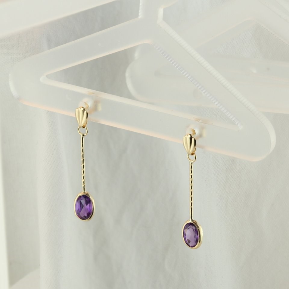 9ct Gold Amethyst Drop Earrings - 26mm drop - G1847