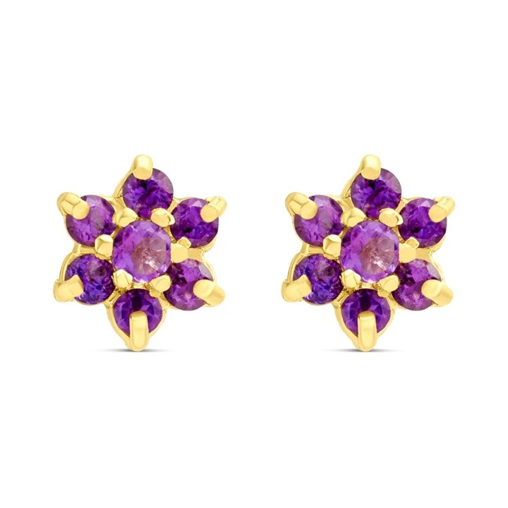 9ct Gold Amethyst Flower Cluster Stud Earrings - G04101