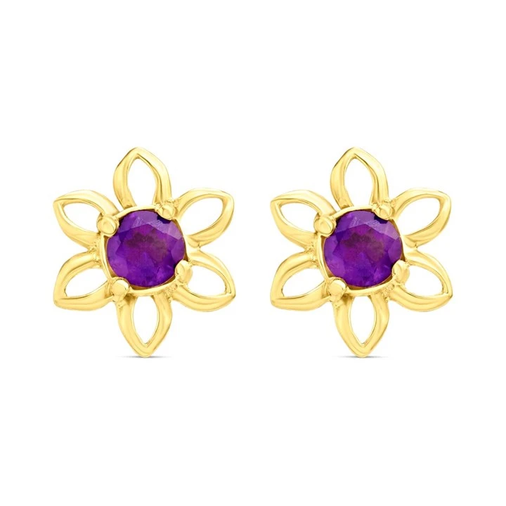 9ct Gold Amethyst Flower Stud Earrings - 10mm - G0495