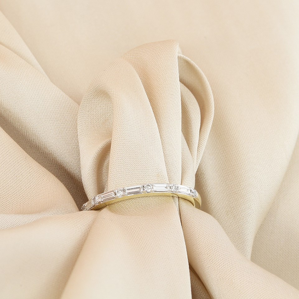 9ct Gold Baguette And Round Brilliant Cut Diamond Half Eternity Ring, 1/4ct - D80146