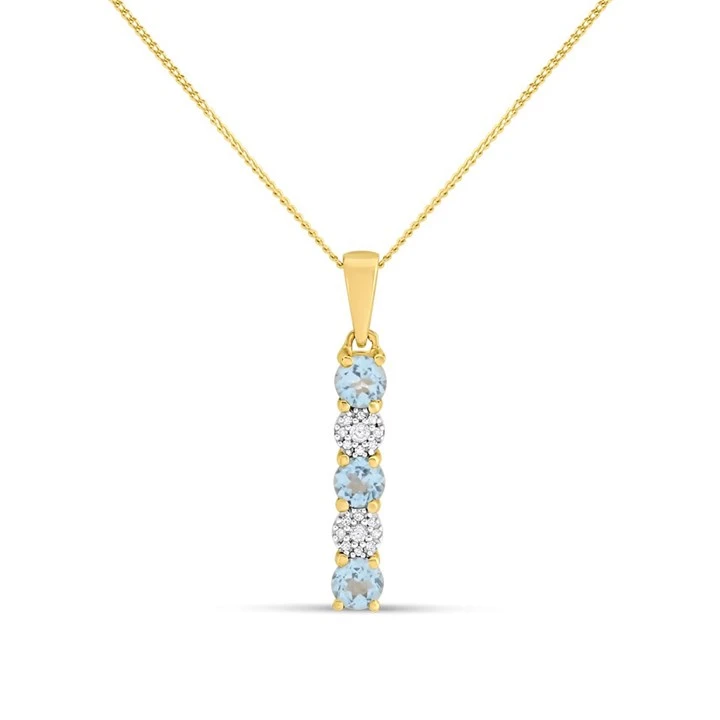 9ct Gold Blue Topaz And Diamond Necklace - D95130