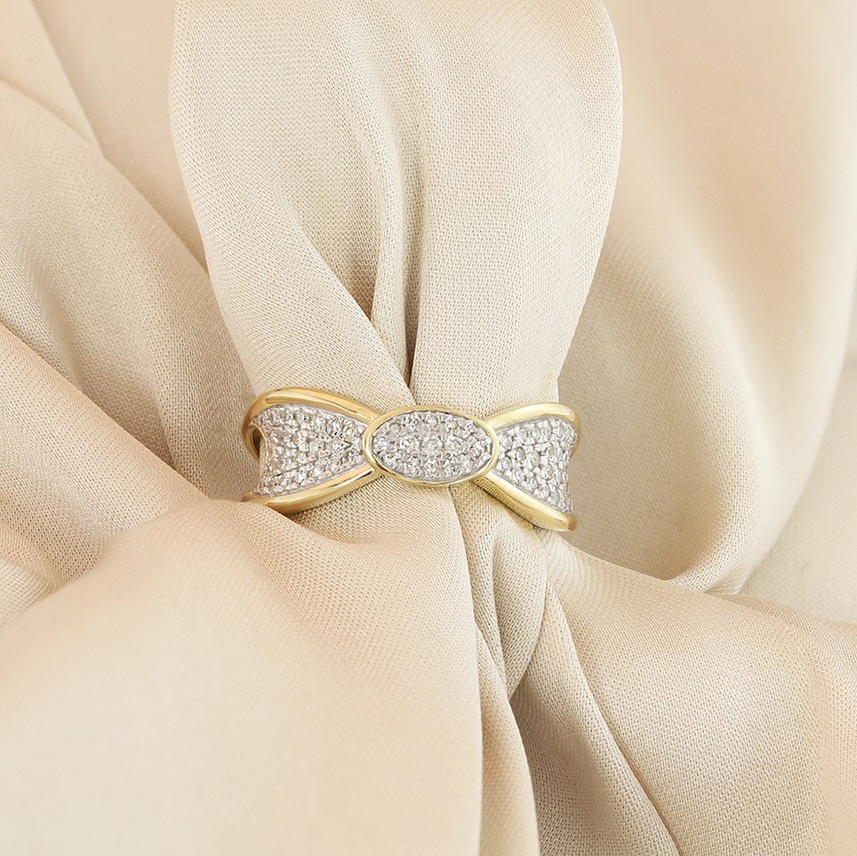 9ct Gold Bow-Like Diamond Cluster Ring, 1/4ct - D92122