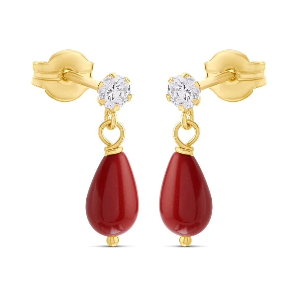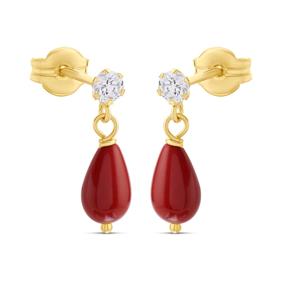 9ct Gold CZ And Coral Drop Earrings - G2888