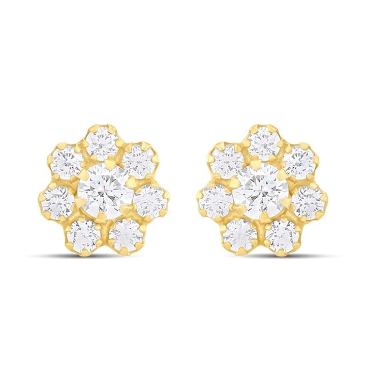 9ct Gold CZ Flower Stud Earrings - G3201