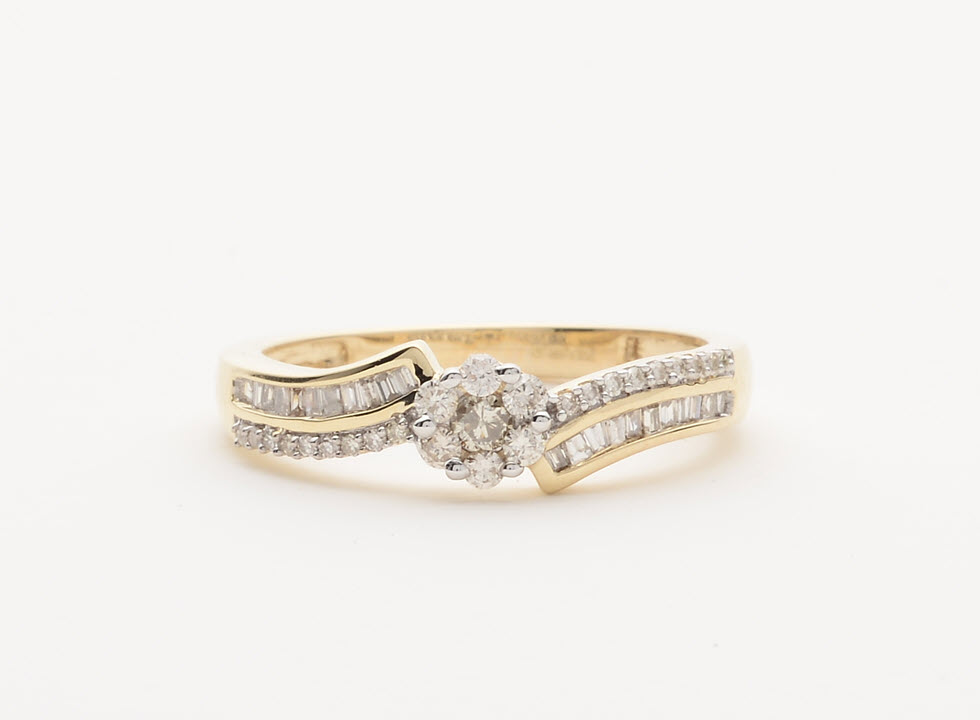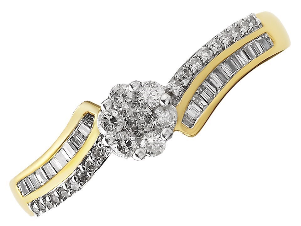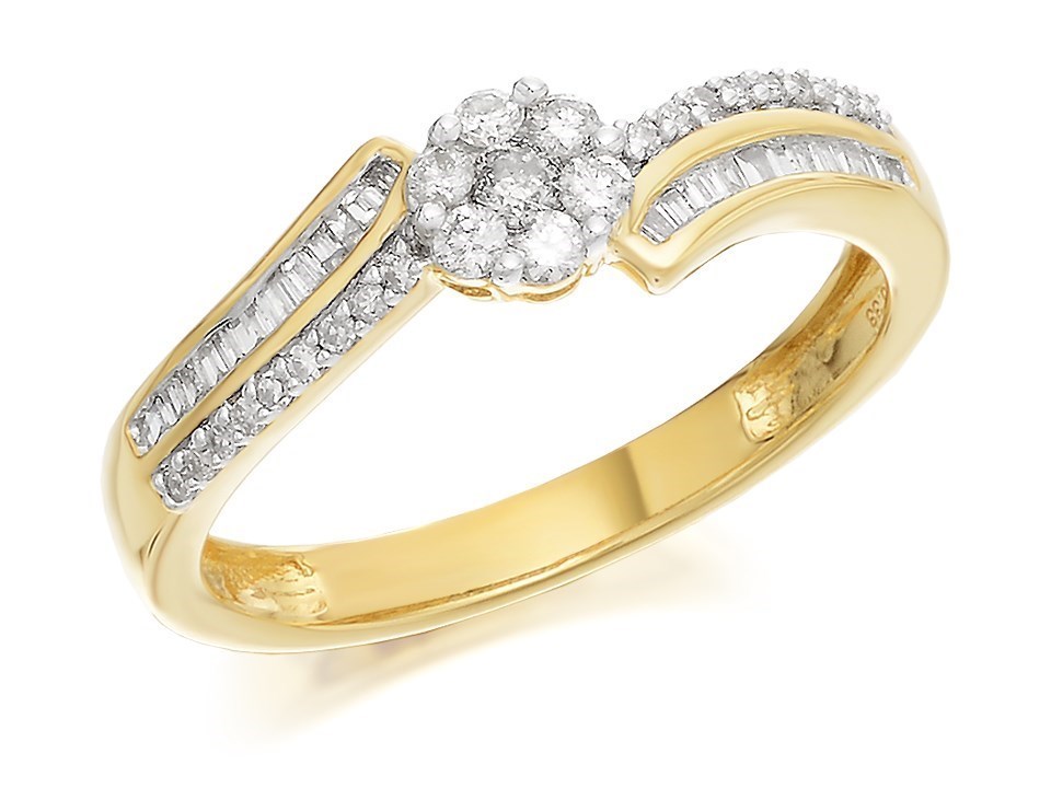 9ct Gold Crossover Cluster Ring - 1/3ct - D6113