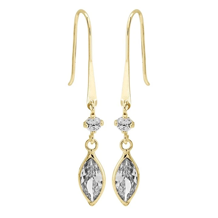 9ct Gold Cubic Zirconia Hook Wire Earrings - 32mm drop - G1056