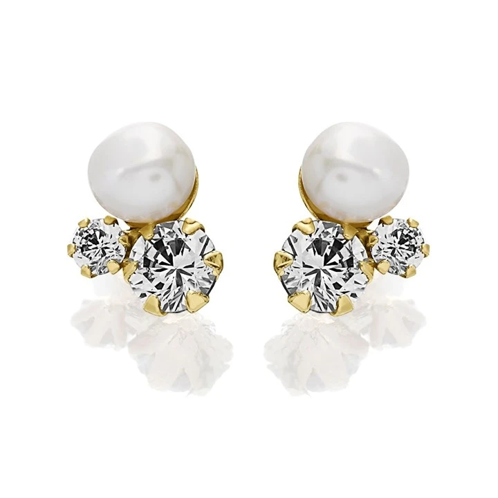 9ct Gold Cultured Freshwater Pearl And Cubic Zirconia Stud Earrings - G1494