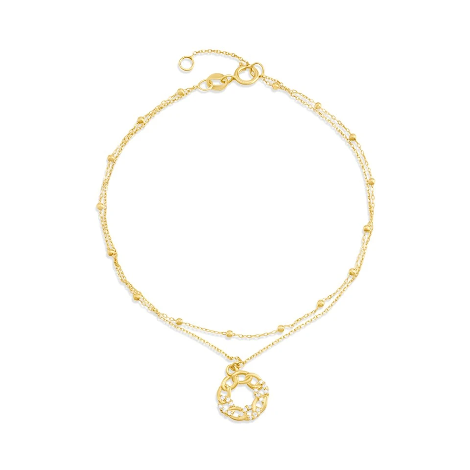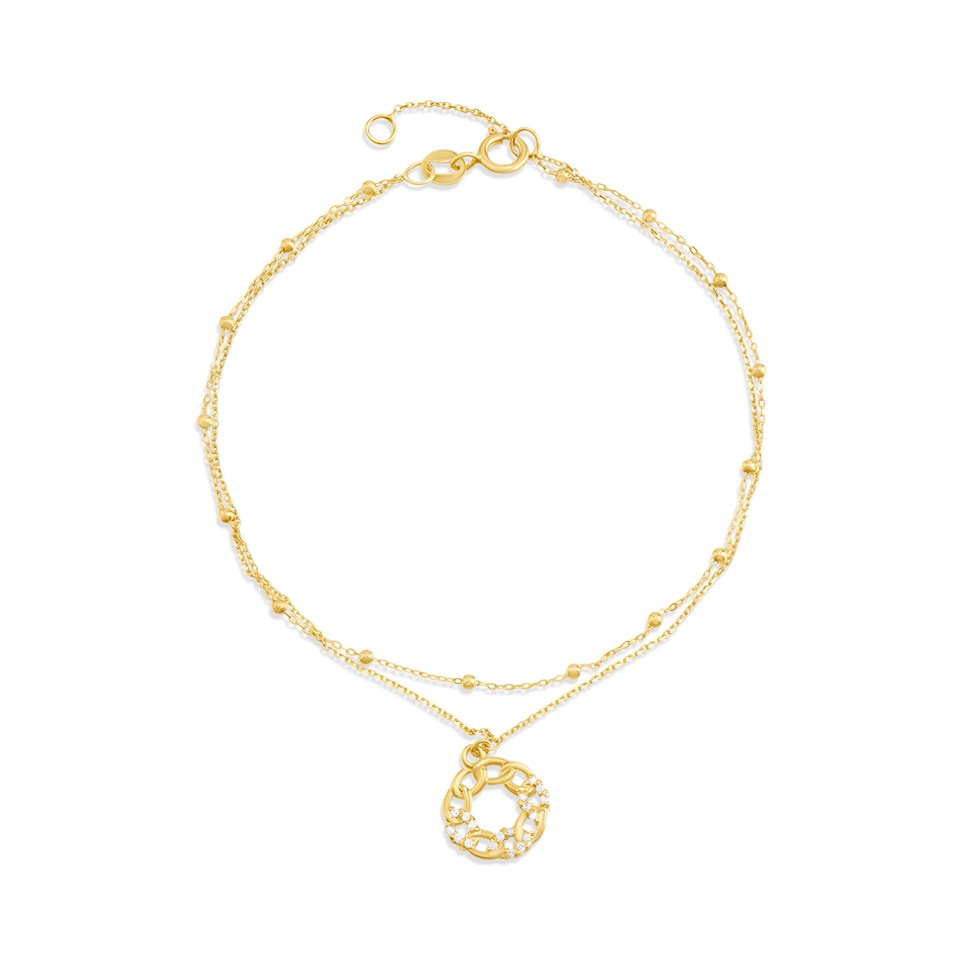 9ct Gold Curb Style CZ Two Row Bracelet - G64114