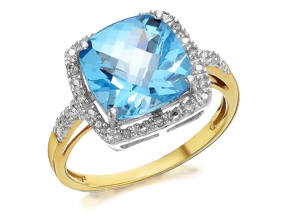 9ct Gold Cushion Blue Topaz And Diamond Ring - 7pts - d8416