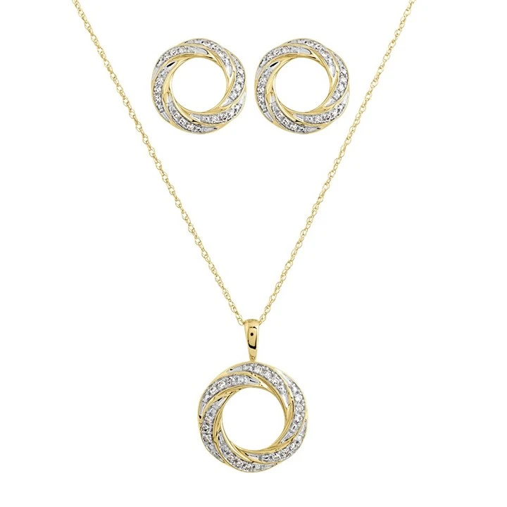 9ct Gold Diamond Circle Necklace And Earrings Gift Set - 1/4ct - D8615