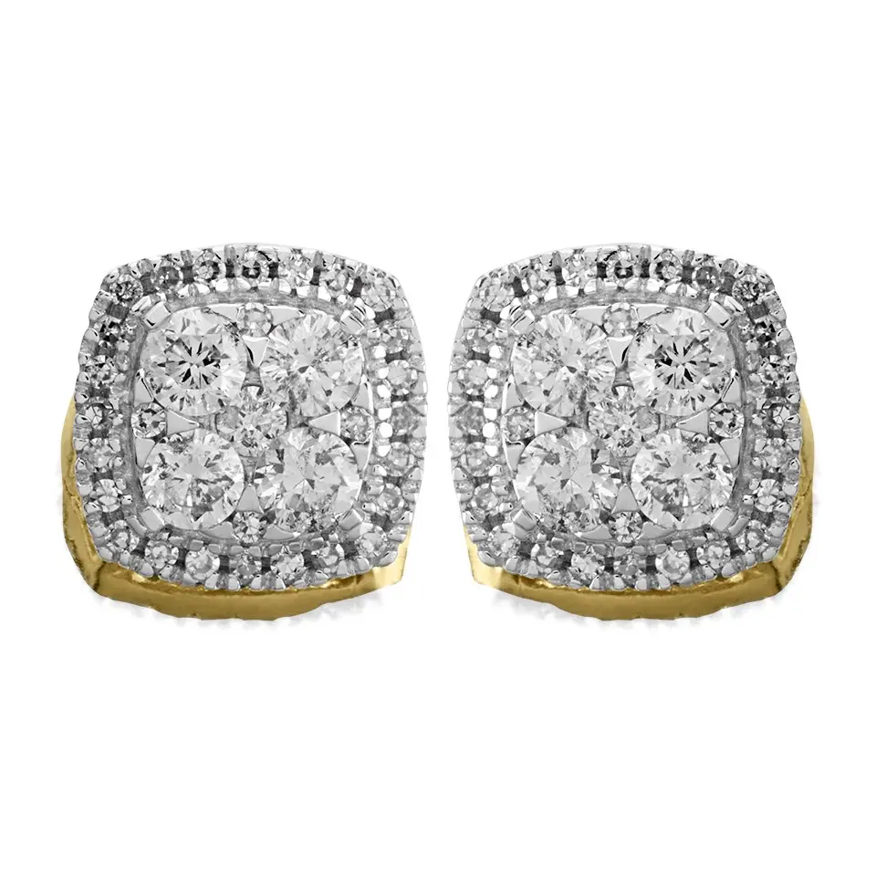 9ct Gold Diamond Cushion Cluster Stud Earrings - 1/3ct per pair - D5532