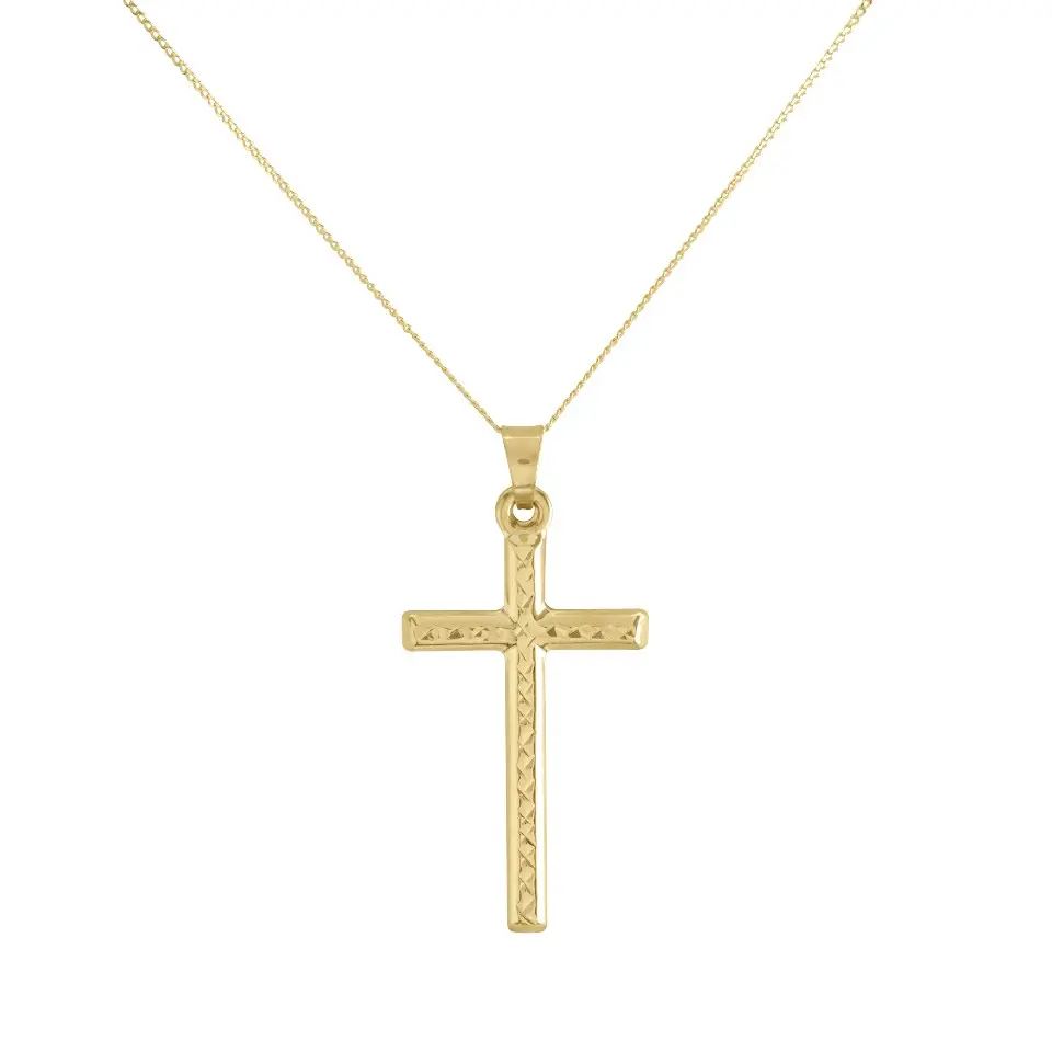 9ct Gold Diamond Cut Cross And Chain - R6814