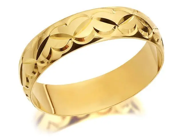 9ct Gold Diamond Cut Heart Wedding Ring - 5mm - R4394