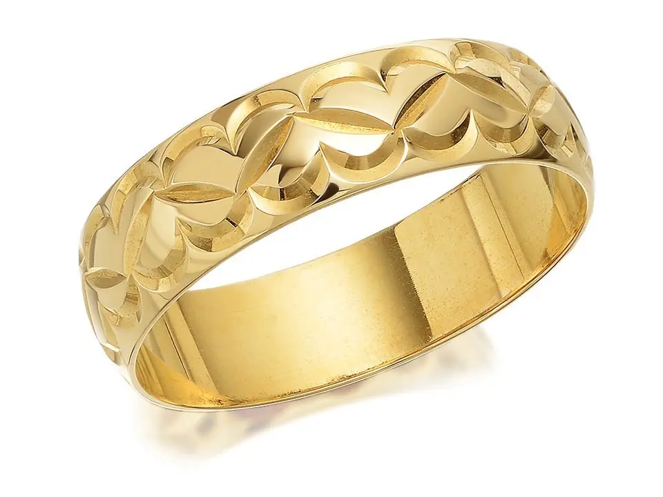 9ct Gold Diamond Cut Heart Wedding Ring - 6mm - R4344