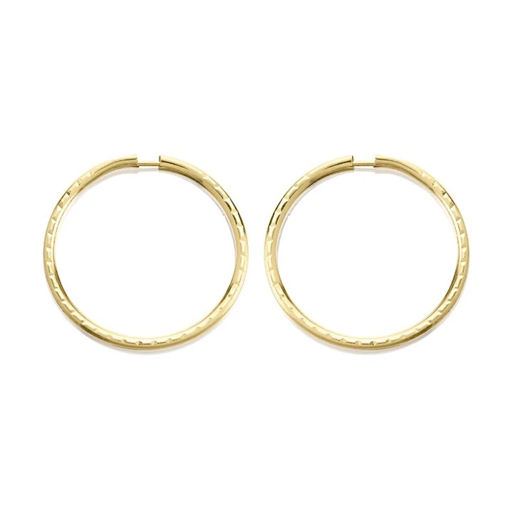 9ct Gold Diamond Cut Hoop Earrings - 14mm - G2462