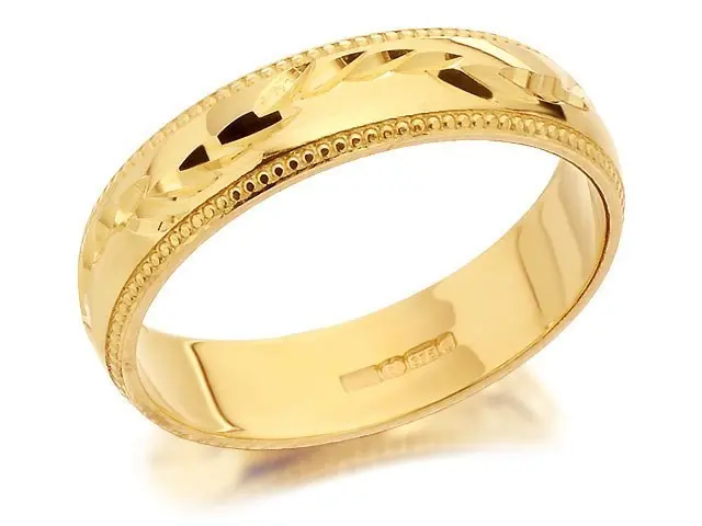 9ct Gold Diamond Cut Leaf Wedding Ring - 4mm - R4271