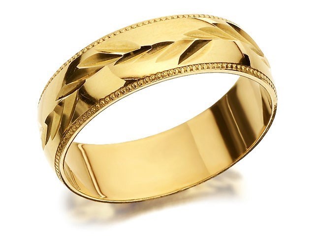 9ct Gold Diamond Cut Leaf Wedding Ring - 6mm - R4221