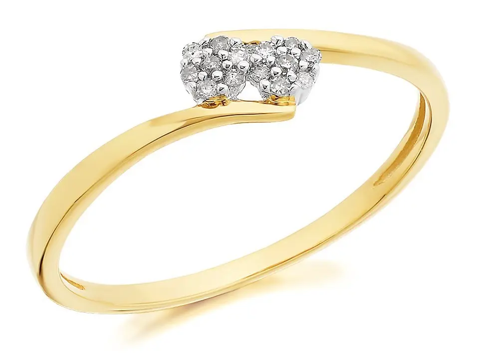 9ct Gold Diamond Double Cluster Crossover Ring - 5pts - D8014