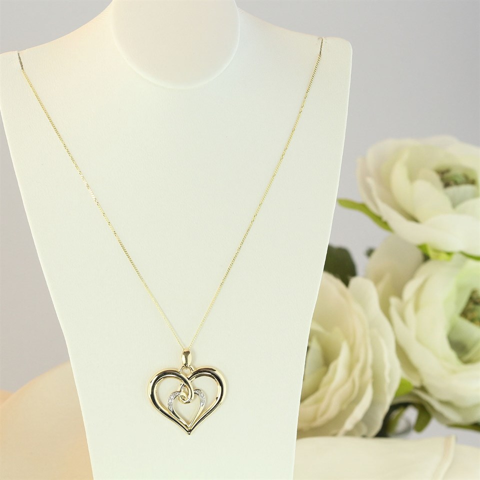 9ct Gold Diamond Double Open Heart Necklace - R69117