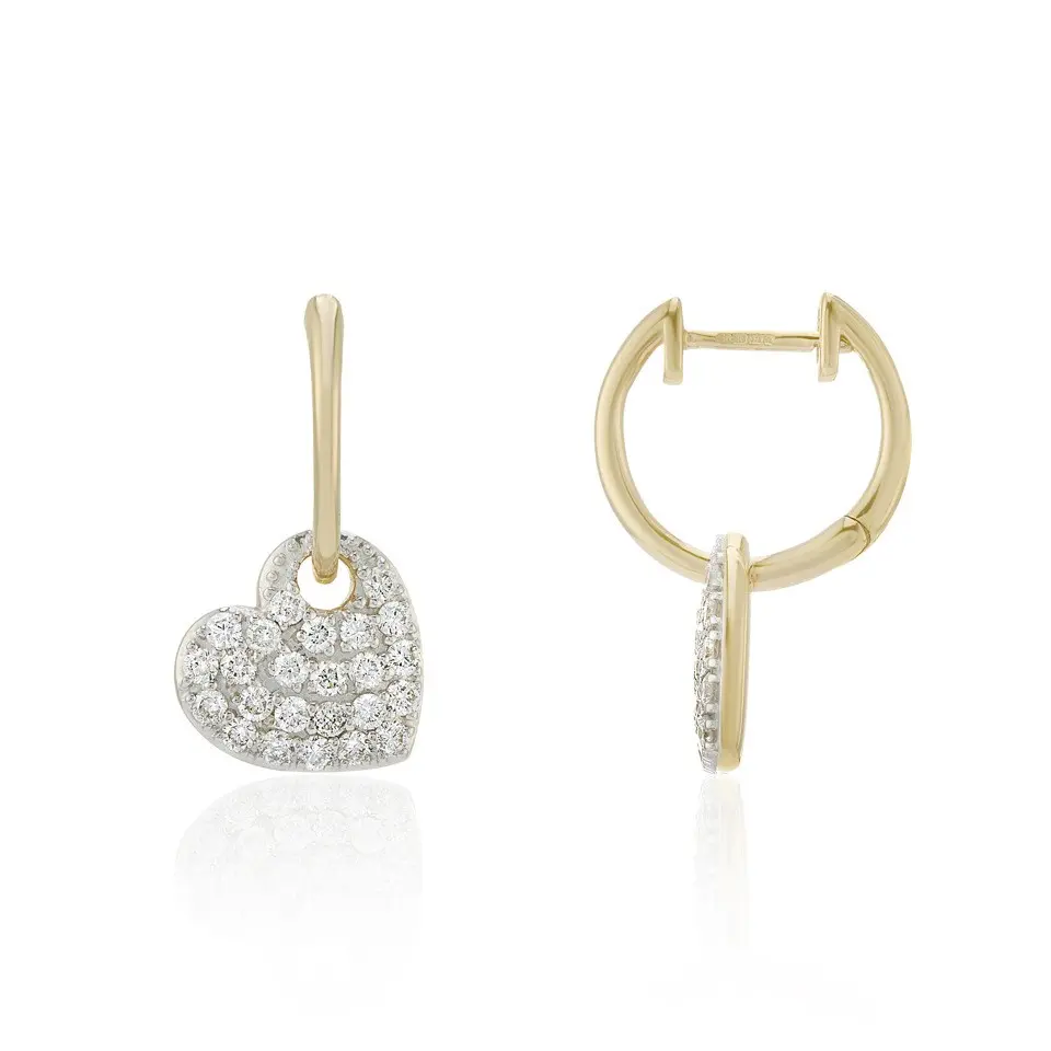 9ct Gold Diamond Heart Hoop Drop Earrings - 78pts per pair - D94112