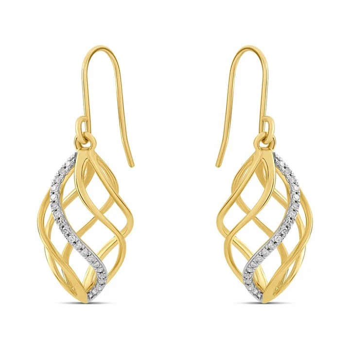 9ct Gold Diamond Hook-Wire Basket Drop Earrings - D9696