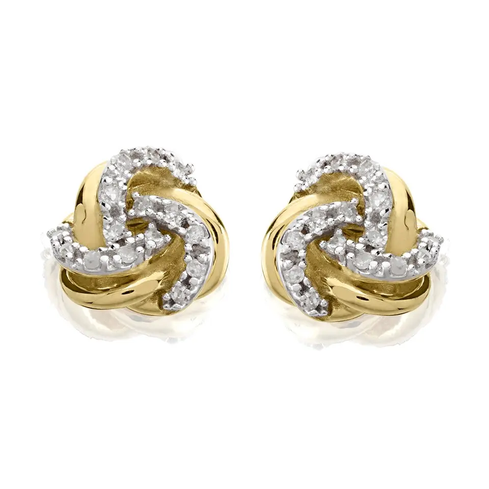 9ct Gold Diamond Knot Stud Earrings - 5pts per pair - D54120