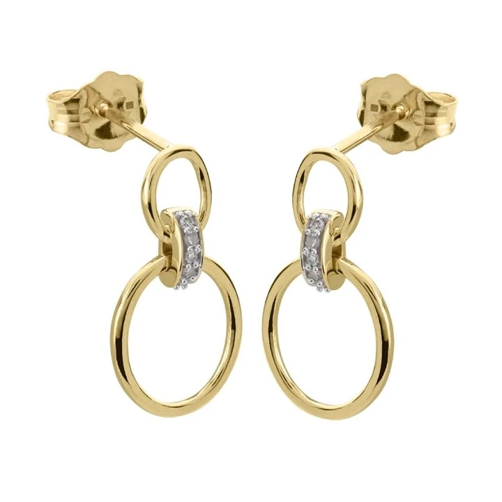 9ct Gold Diamond Oval Link Drop Earrings - 16mm drop - D54122