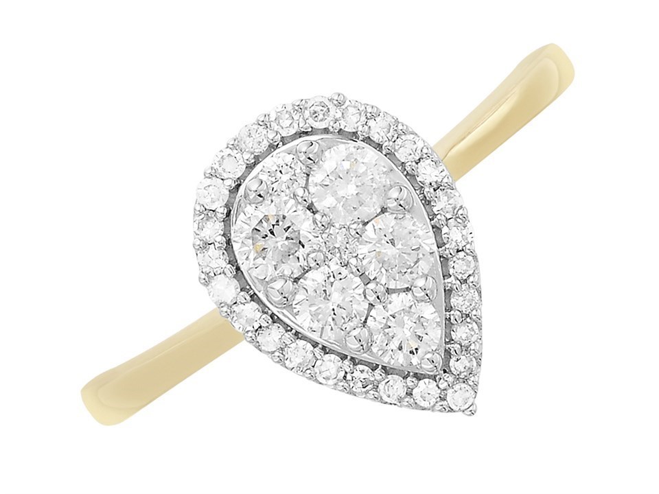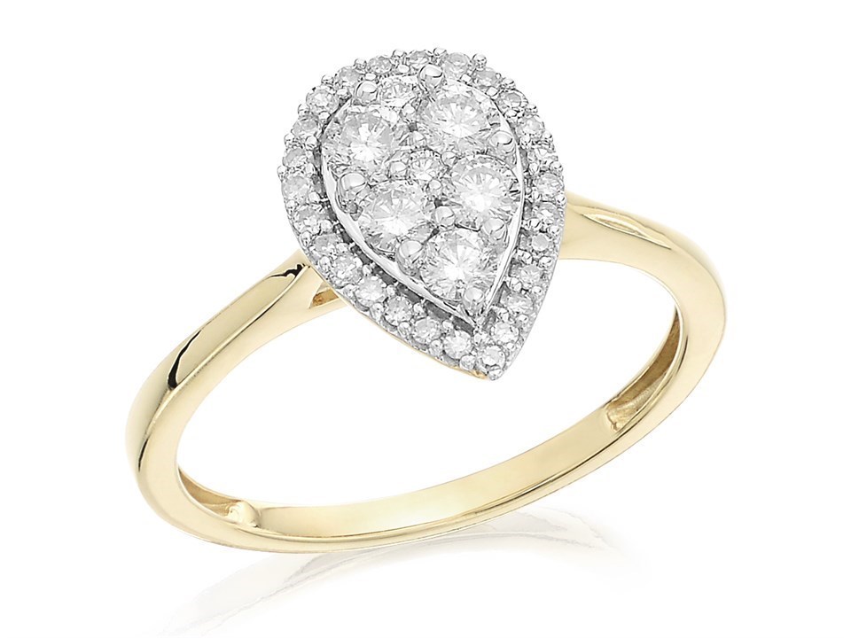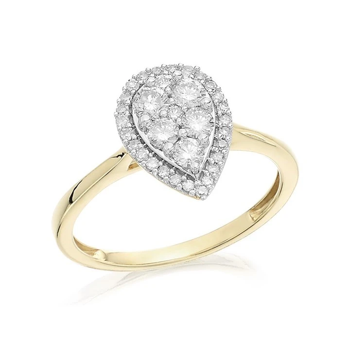 9ct Gold Diamond Pear Halo Cluster Ring - 1/2ct - D9260