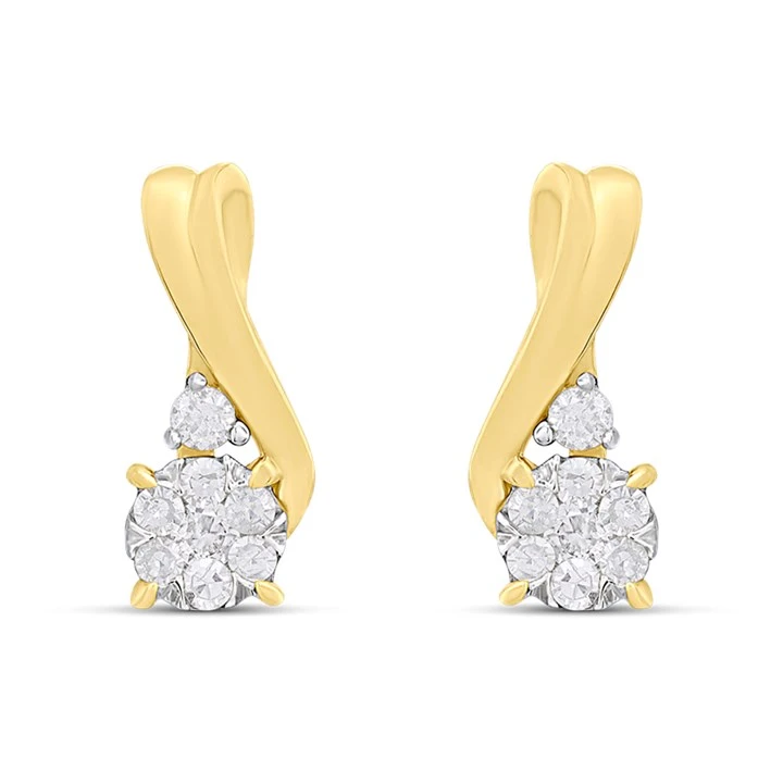 9ct Gold Diamond-Set Swirl Cluster Stud Earrings - D94176