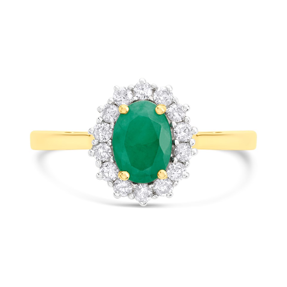 9ct Gold Emerald And Diamond Cluster Ring - 30pts - d7619