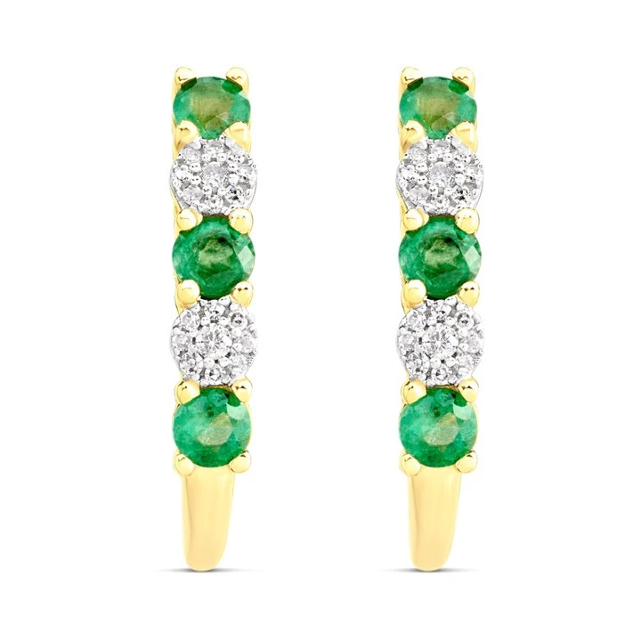9ct Gold Emerald And Diamond Curved Stud Earrings - 8pts per pair - D9675