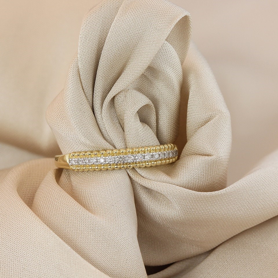 9ct Gold Grain-Set Diamond Half Eternity Ring - D80149