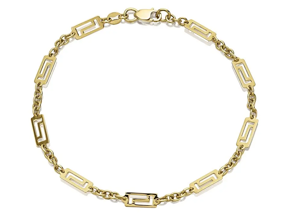 9ct Gold Greek Key Belcher Bracelet - 7.5in - G6454